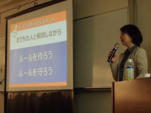 5・6年生児童と4~6年生の保護者を対象に、PTA研修部主催のスマホ・ケータイ安全教室を行いました。KDDIの講師の方から、使い方をまちがえると一生消えない傷が残ることを、3つの事例をもとに教えていただきました。子ども達は、実際に起こった事例の紹介を真剣に見ながら、親子でルールを作り守ることが大切だと学んでいました。