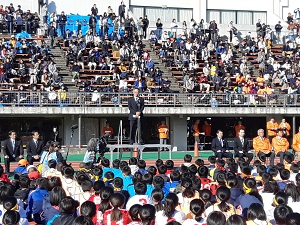 11月の学校集会も、放送室からの放送を聞きながらの集会となりました。今月は、河北郡市作品展の代表者や各種コンクールの表彰・いしかわっ子駅伝の壮行式を行いました。壮行会では、代表の櫻井さんが、過去最高の成績を残すため全員で全力を尽くすと力強く挨拶をしました。