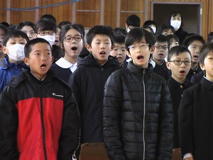 今日は、卒業式の予行練習を行いました。全校児童が、15日の卒業式に向けて、本番さながらに真剣な表情で臨んでいました。卒業生も在校生も、お互いに感謝の気持ちを伝えられる式にしようと頑張っていました。