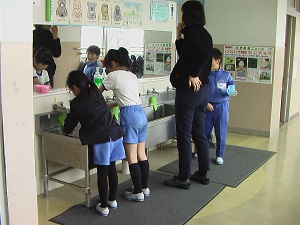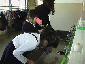 虫歯予防のため、本校では給食後に全員はみがきをしています。