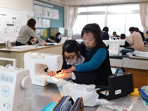 先週に引き続き、ミシンボランティアの方々が、5年2組のエプロン作りの支援に来てくださいました。ミシンの使い方だけでなく、しつけの仕方やアイロンのかけ方など、裁縫の技能を磨くためのコツをたくさん教えていただきました。ありがとうございました。