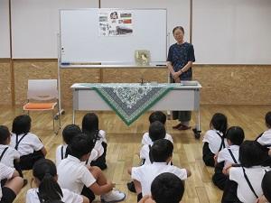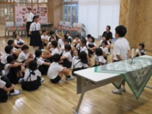 かほく市は、哲学者西田幾多郎博士の出生地です。かほく市の子供たちはふるさと学習の一環として、偉人である西田幾多郎博士について学びます。今日は5年生を対象に西田幾多郎記念館から3名の学芸員の方々をお招きして「哲学対話」という授業を行いました。