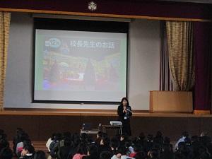 校長先生は、「人権」についてのお話をしました。12月4日~10日は人権週間です。お互いに違いを認め、友達のよいところを見つけて、それぞれが大切な存在であることを知る1週間です。絵本「ONE」の読み聞かせを通して、友達とのかかわり方についてのメッセージを送りました。