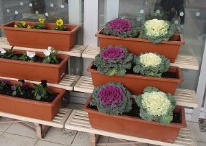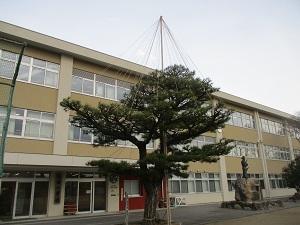 学校の玄関にあるシンボルツリーの松の木に、雪吊りをしていただきました。玄関のプランターにも葉牡丹が植わり、冬が来たことを一層感じさせます。