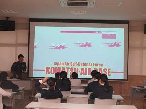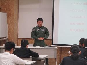遠藤様からは、日本を守るために日夜努力されていることについてお話していただきました。体力が必要であることはもちろん、外国とのコミュニケーション能力を日々磨いていることを学ぶことができました。