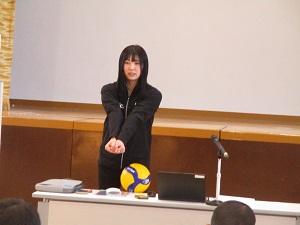 渡辺様からは、一つのことを貫いていくことの大切さを学びました。「自分の選んだ道を成功につなげる」ようにしていくことが大切であるということを教えていただきました。一緒にバレーをすることもできました。