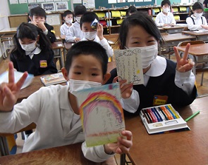 今日の長休みは、地域の方々やお世話になっているボランティアさんに全校児童で寒中見舞いを書きました。