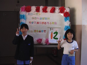 6年生送る会のスローガン「未来へはばたけ、今までありがとう6年生」が、児童玄関前にカウントダウンとともに掲示されました。どの学年も、大好きな6年生のためにと出し物の準備を始めています。