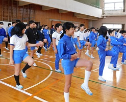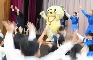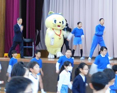 市長さんもご一緒に体操していただきましたが、市長さんの動きのキレの良さに子ども達も地域の皆さんもびっくり!間近で見ていた1年生は「市長さん すごい!」と感激していました。