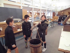 3年生が、うみっこらんどで、社会科の学習「昔の道具」について学びました。