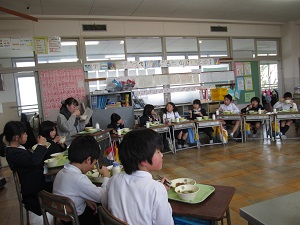 お昼の給食もクリス先生を囲み、一緒に食べて楽しい1日でした。