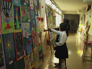 中学年の郡市図画作品展の作品が、本校に展示されています。河北郡市の各校代表の作品ばかりなので、力作揃いです。それぞれのテーマの中で創意工夫がされ、子ども達も興味を持って鑑賞しています。明日6日夕方まで展示しています。ぜひご来校ください。