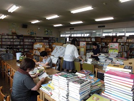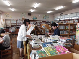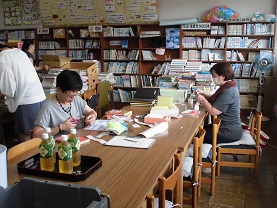 7月10日 午後2時から、図書室にボランティアさんにお越しいただいて、本の修理やシール貼りをしていただきました。