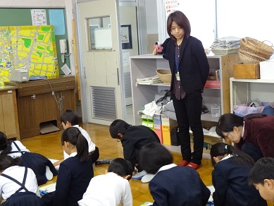 栄養教諭の小鹿山先生がゲストティーチャーです。