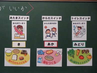 内容は、「たべものには、赤・黄・緑があるよ」でした。