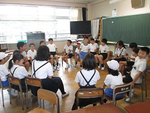 避難を呼びかけてから2分で全児童が3階に集合しました。