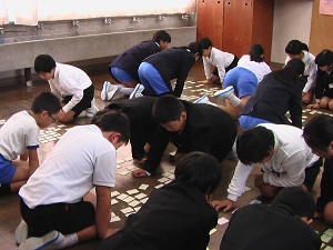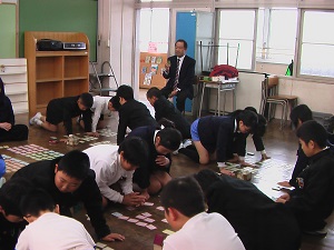百人一首かるたの先生として、市愛護センターの中島さんが来てくださいました。お昼休みの短い時間でしたが、読み手の中嶋さんの声に集中して練習していました。
