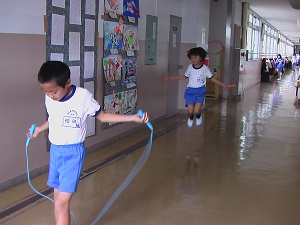 朝から子ども達は、縄跳び練習に励んでいます。