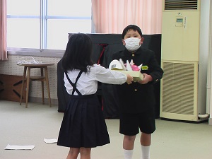 明日は、新1年生を迎えての体験入学の日です。案内する現1年生は、お兄さん・お姉さんとして、張り切ってプレゼントの準備もしてきました。