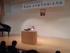 「いのちのおしごと」と題し、看護師であるお母さんが、赤ちゃんとお母さんの2つの命を守る尊い仕事をしていることや自分の命を大事にし愛してくれていることを知り、お母さんに感謝する気持ちを、堂々とした素晴らしい態度と聞きやすい声で伝えるができました。