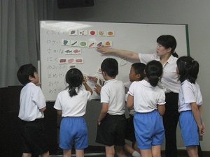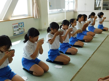 お抹茶を点てて、お客様に差し上げる作法を丁寧に教えていただき、お客様役の子ども達も敬意をもってお抹茶をいただく作法を教えていただきました。