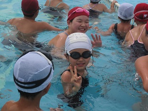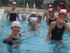 大好きな6年生と一緒にプールに入り、1年生は大喜び。6年生も、優しく教えたり遊んだりと、大満足の1時間でした。