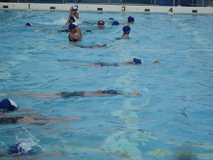 3年生は長い距離を泳ごうと、息継ぎに挑戦中です。