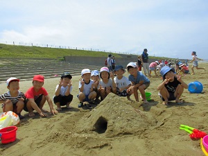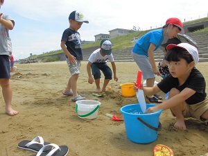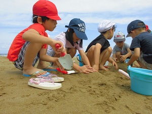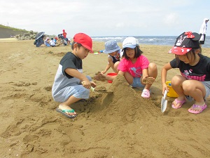 1年生が七塚の海岸で浜遊びに行ってきました。