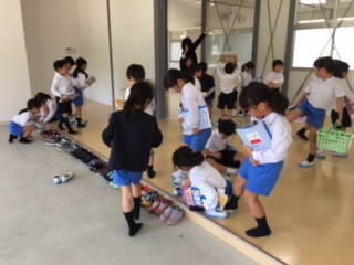まだ下駄箱が設置されていませんが、玄関口で靴をきちんとそろえて入るところも、七塚っ子のいいところですね。