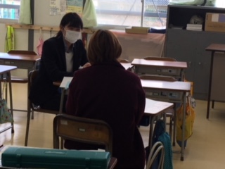 仮校舎での初めての通知表渡しです。どのクラスでも、和やかに懇談が進んでいました。子ども達の成長に繋げるため、保護者の方と担任が連携する大切な機会です。2学期のがんばりと3学期に向けての課題を共有し、有意義な冬休みを過ごしてもらいたいと思います。