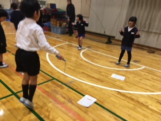1月の縄跳び大会に向けて、1年生もなわ跳び練習に頑張っています。友だち同士で跳んだ数を数え合い、お互いに記録を伸ばそうと励まし合っている姿が、いいですね。