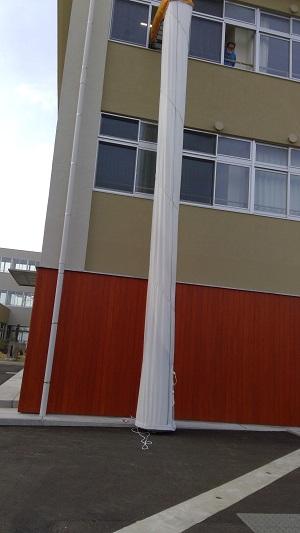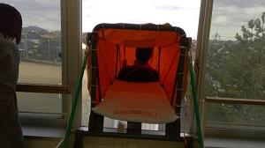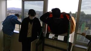実際に3階から避難する練習を行いました。初めは3階から垂直に降りるという怖さもありましたが、安全に避難することができることを確認しました。いざという時以外この設備は使いませんが、訓練できてよかったです。