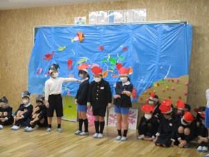 1階ホ-ルの図書室前に、子ども達に手伝ってもらって飾り付けをしました。