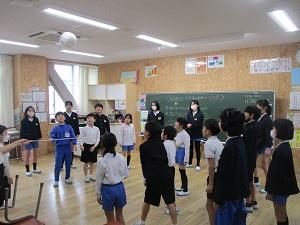 4~6年生が、先輩として、どのように放送したらよいかを3年生に優しく教えていました。