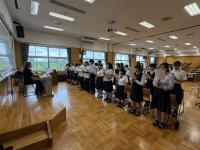 選挙管理委員の方をお招きし、選挙の意義や仕組みについてご講演いただきました。2016年から公職選挙法が改正され、「18歳選挙権」が導入されています。生徒たちにとっては、あと1年ほどで有権者となることもあり、真剣な表情で耳を傾けていました。