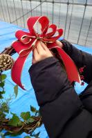 あらかじめ作っておいたリボンを最後につけて完成です。みんな上手にできました。クリスマスリースを飾るのは魔除けの意味があります。いいクリスマスが迎えられそうです。