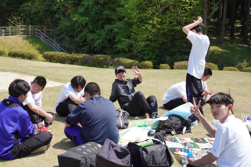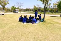 行きでは遠回りをして長めに歩いたのですが、みんな友達と話すなどして楽しく目的地まで歩いていきました。公園内では特に何かするような催し物は企画しておらず、自由に過ごすことになっていましたが、ここでもみんな持ってきたボールで遊んだり、日陰で友達と話したりなど思い思いに過ごし楽しんでいました。また、当日は羽咋工業高校の3年生も同じく遠足に来て出会い、お互いに交流をして楽しむ生徒もいました。