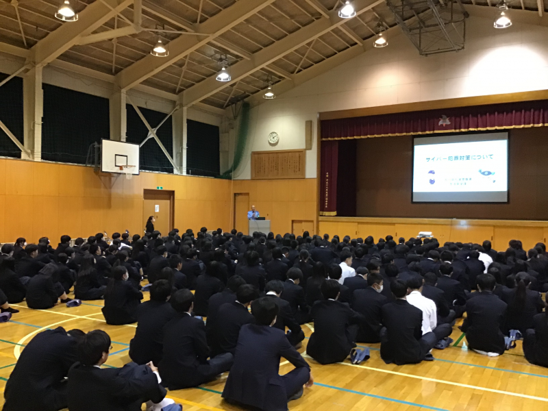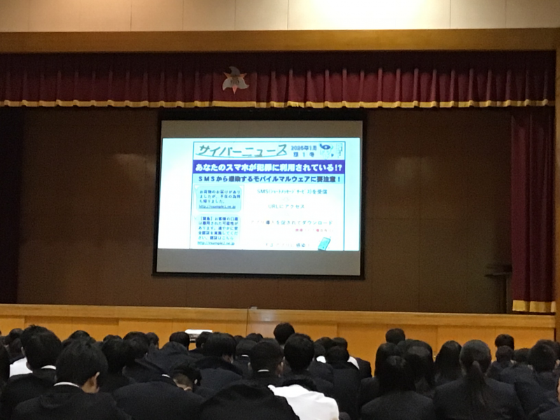 5月7日(水)6限目に防犯教室を行いました。七尾警察署生活安全係長の清水勇輔さんを講師としてお迎えし、サイバー犯罪対策についてのお話がありました。