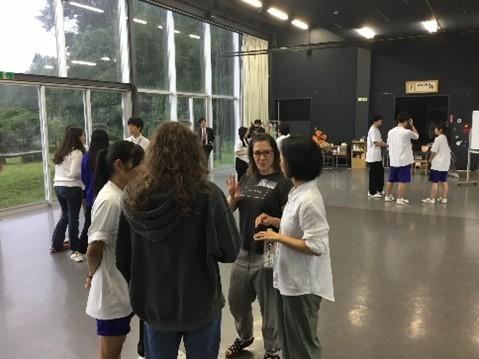 石川県金沢市出身で、米ニューヨーク在住のブロードウェイ俳優、由水南さんが本校に来校され、いしかわ舞台芸術祭の一環として、本校演劇科1・2年生20名に対して演技や表現についてのレッスンを行いました。外国人講師2名とトルコ出身の高校生4名も参加しており、生徒にとっては非日常的で貴重な体験となりました。英語が少し苦手な生徒も積極的に活動し、言語を使わない表現について学び、トルコ出身の高校生ともコミュニケーションをとって、一緒に演技も行いました。
