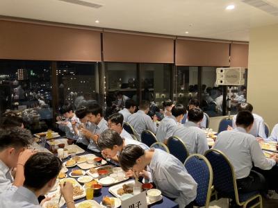 夜ご飯はとてつもなく豪華で、みんな修学旅行最後の夕食を楽しんで食べていました。
