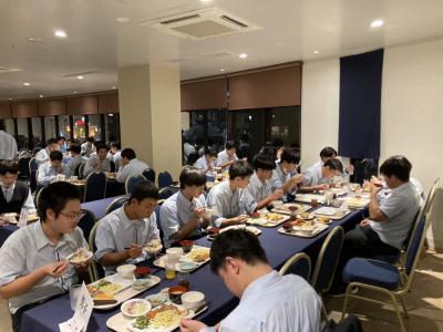 朝食はバイキング形式でみんなモリモリ食べ、本日のメインイベントとなる美ら海水族館や、マリン・文化体験に向けて、気合いを入れているようでした。