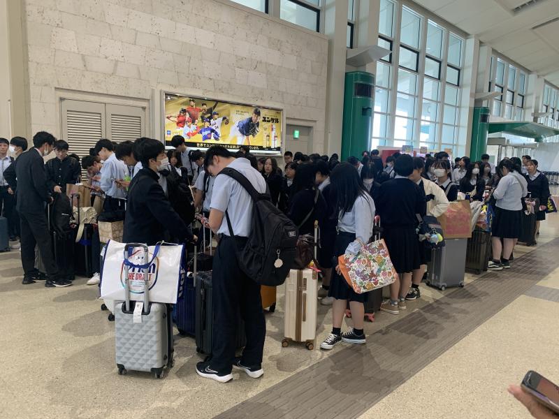 修学旅行最終日、本日の沖縄はあいにくの雨でしたが無事にホテルを出発して、那覇空港に到着しました。