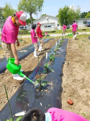 定植後は水をたっぷりやります。