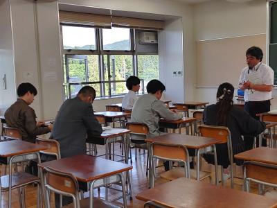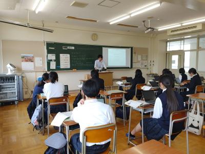 5月20日(月)7限目に交通安全及び薬物乱用防止教室を行いました。七尾警察署生活安全課生活安全課係巡査長の佐々木崇さん、七尾警察署交通課企画規制係係長の塩谷基益さんを講師としてお迎えし、初めに自転車に乗る際の交通安全についての動画を視聴しました。安全のため自転車に乗る際は、ヘルメットを着用しなければならないことを確認しました。薬物乱用防止についてのお話では、薬物にはどんな種類があり、それぞれどんな危険な作用を引き起こすのかを知りました。近年、高校生も薬物の使用によって逮捕されたという件数が増加してきていることを知り、薬物の危険性を知る貴重な機会となりました。