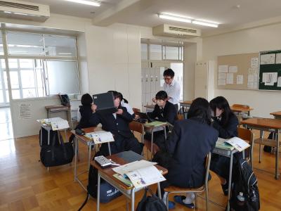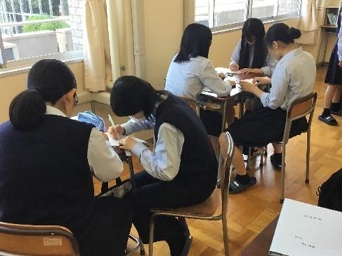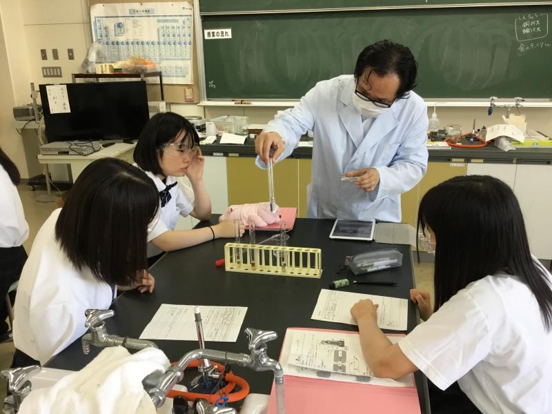 いよいよ相互授業参観の最終週となりました。最後は、1年生の「科学と人間生活」より化学実験の様子になります。「銀」と「白金(プラチナ)」など、金属を区別する方法について、生徒は自分で考え、グループで話し合い、そして実験をして、その結果を振り返って検証しています。
