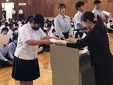 伝達表彰式と壮行式が行われました。伝達表彰式では、大髙教頭から「ここにいる東雲高校の生徒全員に活躍するチャンスがあります。表彰を受けてない生徒も自分自身のチャンスを生かせるように頑張ってください。」とお言葉いただきました。