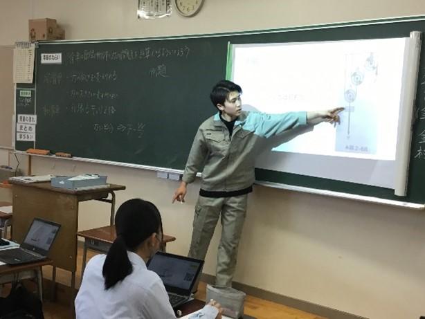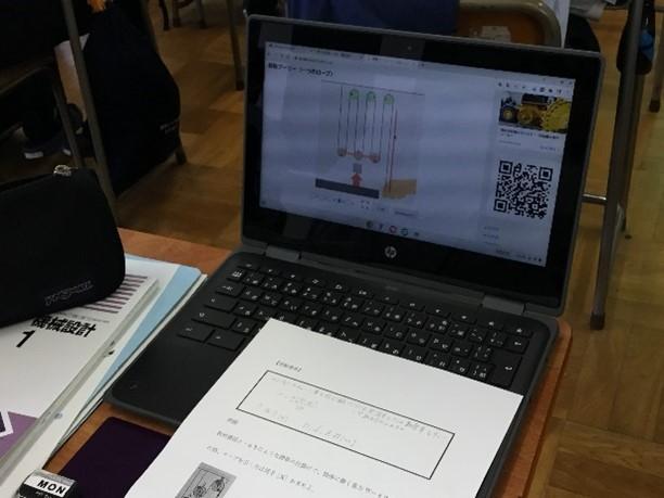 「機械設計」では、滑車を用いた仕事について考えました。一人一台クロムブックでそれぞれ課題に取り組み、理解を深めました。