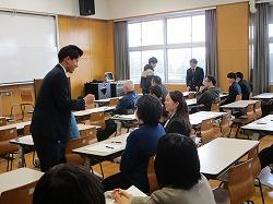 始めに大森教頭から歓迎の挨拶がありました。書類の回収、配付書類の確認と日程説明に続いて、大森教頭、各課からの学校説明会がありました。