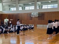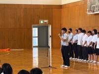 壮行式では、生徒会長から「体調に気を付けて日々の成果を出してきてください。」と激励の言葉がありました。その後、北信越高校総体に出場する陸上競技部とウエイトリフティング部、第44回北陸ブロック高等学校家庭クラブ研究発表会に出場する家庭部が力強い抱負を語りました。最後に応援団を中心に全校生徒で校歌を歌い、北信越高校総体・総文に参加する生徒を鼓舞しました。