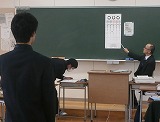 学年によって計測項目数は異なりますが、1年生は身長・体重・視力・聴力・色覚(希望者)の最大5項目について実施しました。各クラスが男女別に1~2班に分かれて、各会場に赴いて計測を行いました。第2体育館では身長と体重の計測が行われ、男子の計測場所では、各自の身長の伸び代や体重の増減に対し、一喜一憂する声が多くありました。